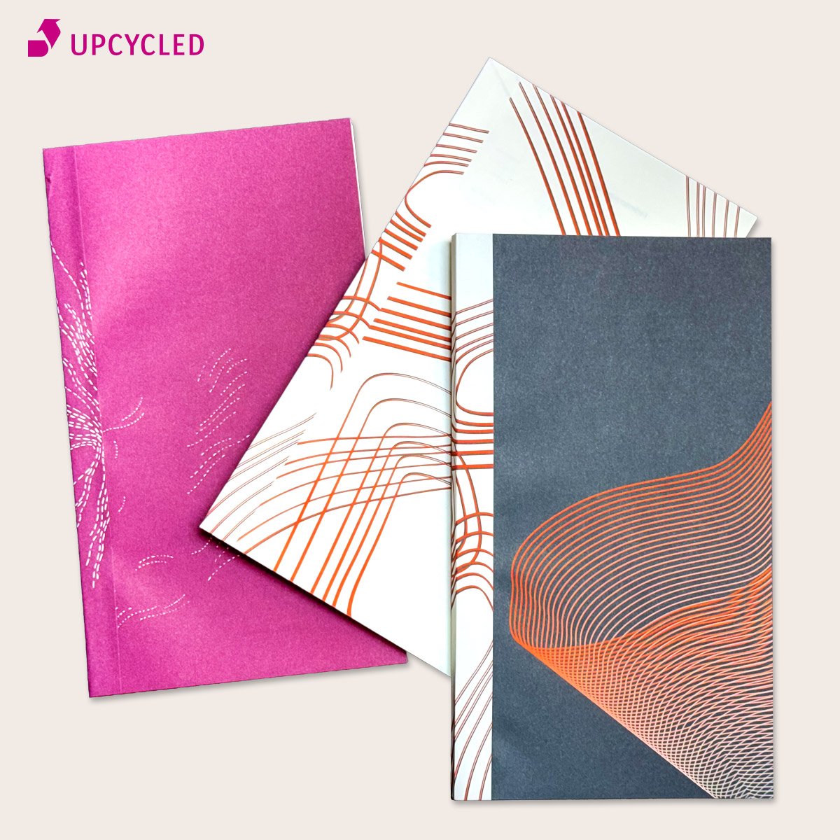 Upcycling: Für dieses rot-strahlende Notizbuch haben wir Papierreste aus der Druckherstellung unserer PACIFICOagenda erwendet und sie zu einem inspirierenden, neuen Buch zusammengefügt: Circa 190 Seiten Munken pure lassen sich wunderbar beschreiben. Bestes Upcycling.