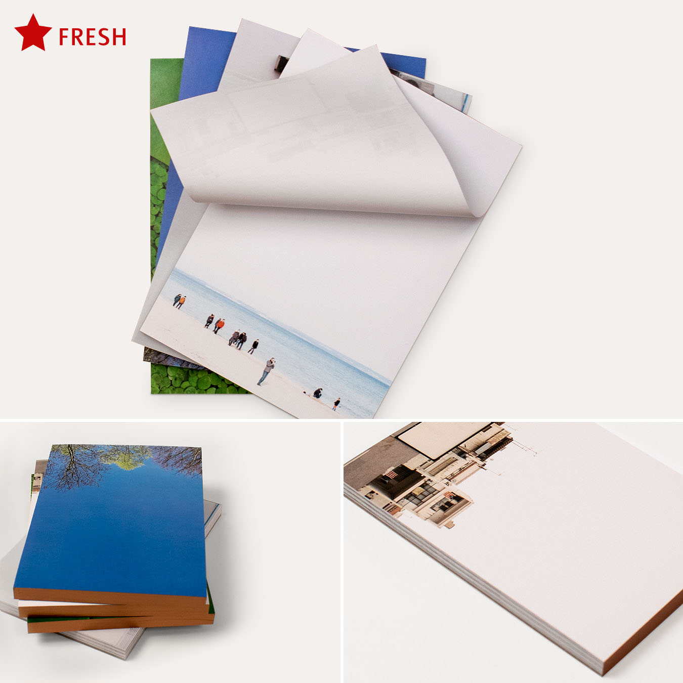 So wird jede Notiz ein Vergnügen - ob Einkaufszettel, todo-Liste, Liebesbrief, Gedankenstütze: Schreiben auf Fotos! DIN A6 Block mit 84 Blatt. Einseitig vierfarbig mit 21 verschiedenen Motiven bedruckt - alle Bilder mit großflächigem Freiraum zum Schreiben. 3mm Rückpappe, Klebung farbig.