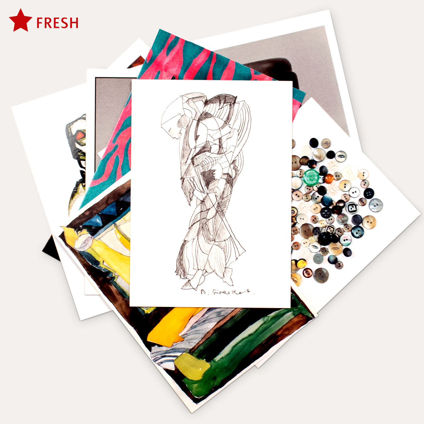 Irgendwie alles Kunst. 10 verschiedene gezeichnete oder fotografierte Motive, DIN A6.